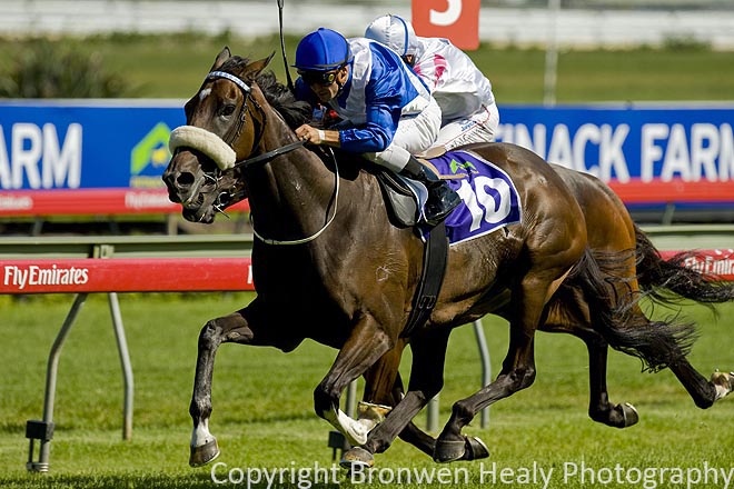 | More Joyous and Nash Rawiller. Futurity Stakes, on Blue Diamond Day. 26 February 2011. One of my favourite images of the great mare. |